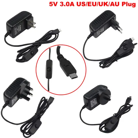 Raspberry Pi 4 Power Supply Adapter ON/OFF Switch USB-C 5V 3.0A US/EU/UK/AU PlugBuy Now On Aliexpress